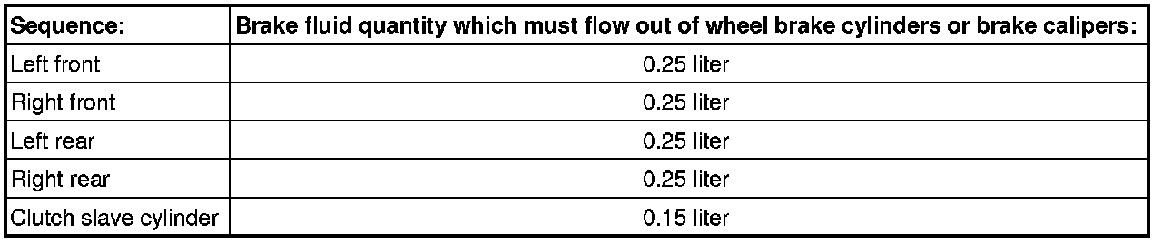 - Open bleeder screw and let the corresponding amount of brake fluid (see table) flow out. Close the bleeder screw, torque.
