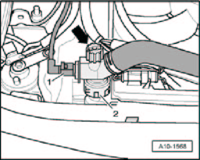 - Disconnect the Engine Coolant Temperature (ECT) Sensor G62 electrical harness connector - 1 -.