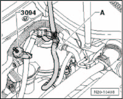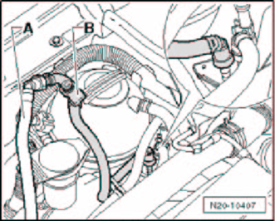 - Clamp off hose to evaporative emission (EVAP) canister purge regulator valve N80 with hose clamp.