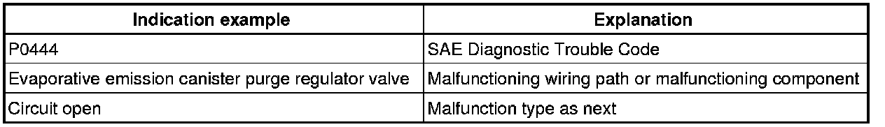 The following table is an example of the DTC information that may be displayed on the scan tool screen:
