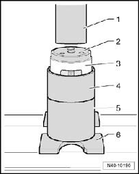 - Press bonded rubber bushing - 1 - in until dimension - a - is reached.