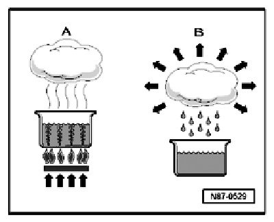 The vapor pressure curves for water and refrigerant R134a show for example that, at constant pressure, reducing the temperature changes vapor to liquid (in condenser) or that, for instance, reducing pressure causes the refrigerant to change from liquid to vapor state (evaporator).