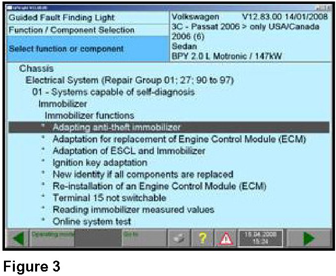 ^ Select "Chassis -> Electrical System (Repair Group 01; 27; 90 to 97) -> 01 Systems capable of self-diagnosis - > Immobilizer -> Immobilizer functions -> Adapting anti-theft immobilizer".