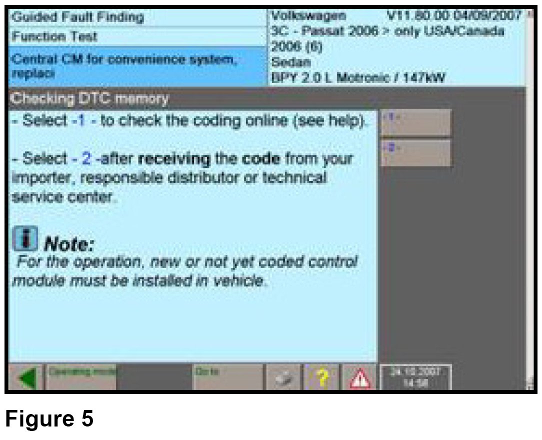 ^ Select option "1" to use online coding or option "2" if you were able to retrieve your coding before parts replacement.
