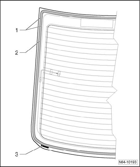 - Markings - 1 - are made along circumference of rear window for applying the sealant - 2 -.