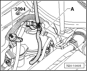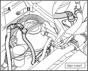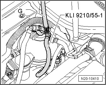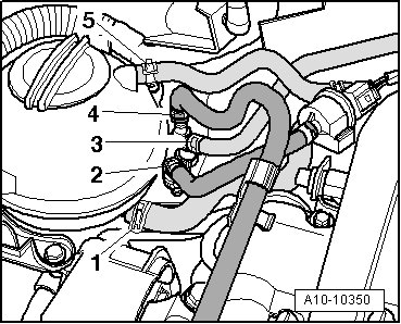 - Connect the (VAG 1397A) with the T-piece and the 6 mm diameter hose between the vacuum line - 1 - and the LDP - 2 -.