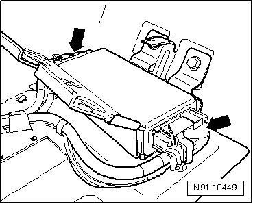 - Remove drawer, or with corresponding equipment, both drawers under front right seat. Refer to