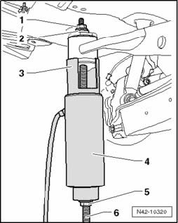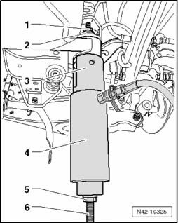 - Lower subframe 10 cm using engine/transmission jack V.A.G 1383 A.