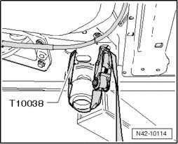 - Replace subframe bolts one after the other on both sides using locating fixtures T10096 and tighten them to 20 Nm.