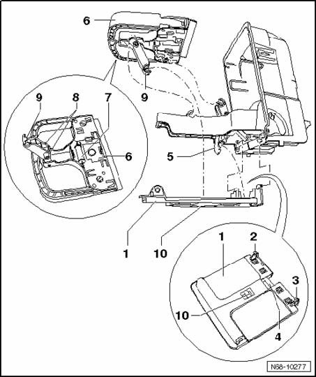 A partial replacement should only be done if servicing is not possible, e.g. because components are too heavily deformed, broken, or damaged in any other way and correct function of the cupholder can no longer be ensured.