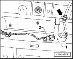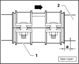 - Align clamp - 1 - to marking on catalytic converter - 2 -.