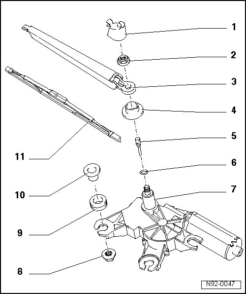 • Removing and installing, refer to=> [ Rear Window Wiper Motor ] Rear Window Wiper Motor