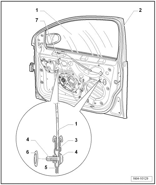 • Accessible from outside (right-hand threads), loosen by turning left, remove outer door plate => [ Outer Door Panel ]