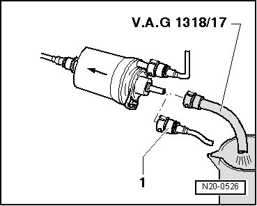 - Disconnect supply line - 1 - from fuel filter input.