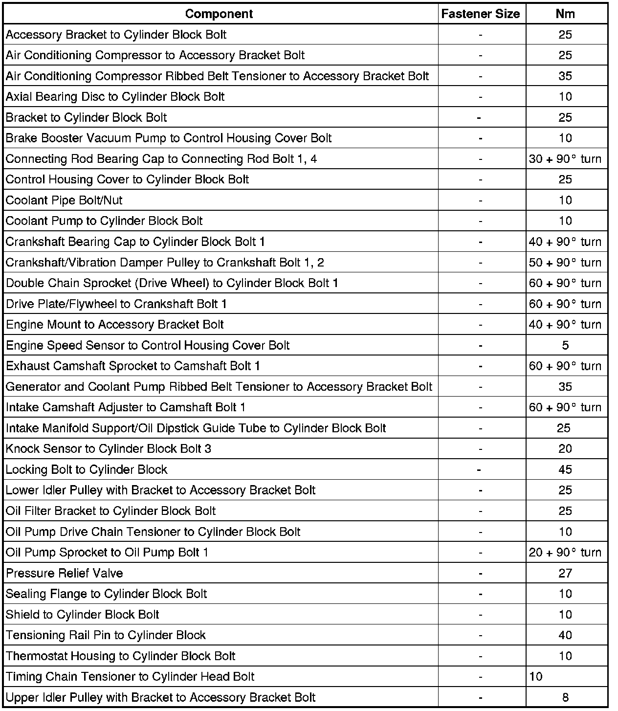 Crankshaft, Cylinder Block - Fastener Tightening Specifications
