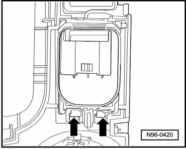 - Disengage retaining tabs - arrows - and remove module for outside mirror adjustment out of cover.