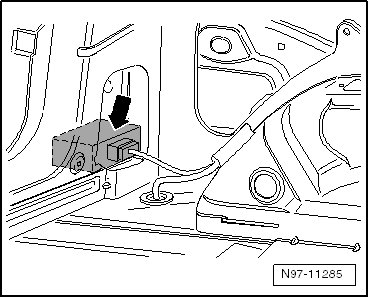 In luggage compartment, left, near taillamp -Arrow-