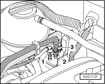- Connect the ventilation line - 1 -, the vacuum line - 2 - and the fuel supply line - 3 -.