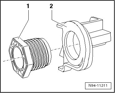 - Insert the new repair tab - 2 - into the mount - 1 - on the headlamp and secure the tab with the bolts - 3 -.