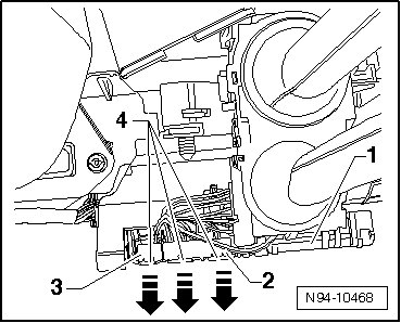 - Remove securing latch - 3 - from harness connector - 2 -.