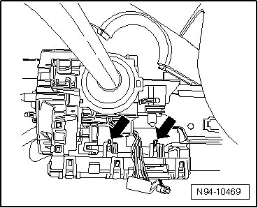 - Disengage catches - arrows - on right side of Steering Column Electronic Systems Control Module.