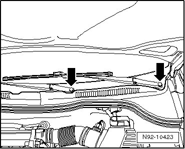 - Slide the arms of the (T10369/1) - 2 - under the wiper arm - 4 - as shown in the illustration.