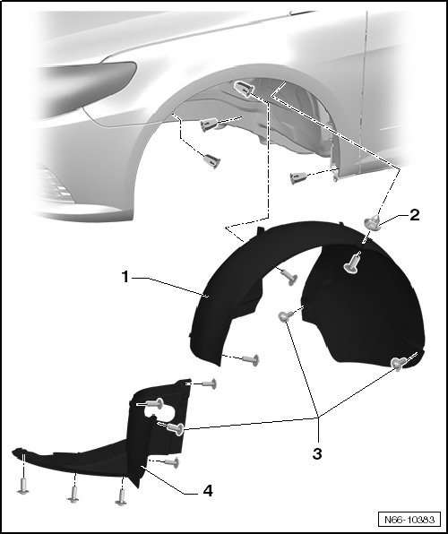 - Remove the front section of the wheel housing liner - 4 -.