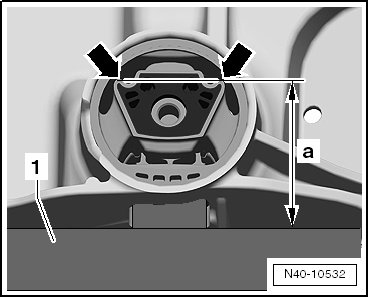 - Press the bonded rubber bushing - 1 - in until dimension - a - has been obtained.