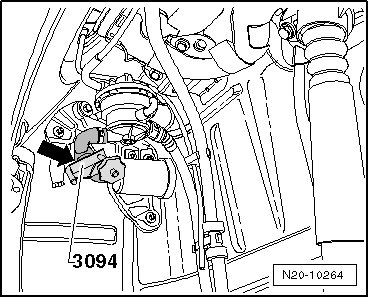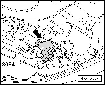 - Clamp off the hose to the Evaporative Emission (EVAP) canister purge regulator valve 1 (N80) using (3094)- arrow -.