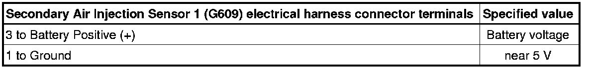 - Using a multimeter, check the Secondary Air Injection Sensor 1 (G609) electrical harness connector terminals for voltage.