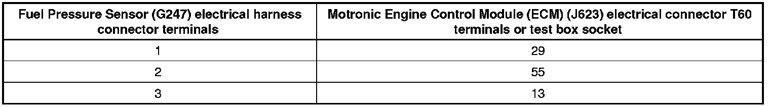 - Using a multimeter, check the Secondary Air Injection Sensor 1 (G609) electrical harness connector terminals to the Motronic Engine Control Module (ECM) (J623) electrical harness connector T60 terminals for an open circuit according to the wiring diagram.
