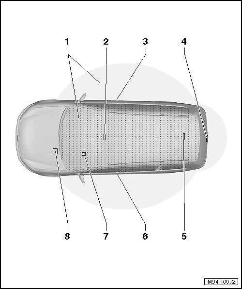 • Component location: in luggage compartment, center, in front of spare wheel well.