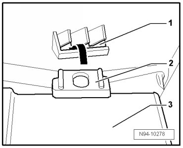 - Insert Headlamp Range Control Module (J431) - 3 - with retaining clip - 2 - in bracket - 1 -.
