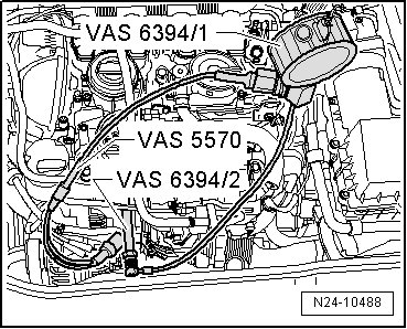 - Connect the fuel pressure sensor and its connector to the (VAS 5570).