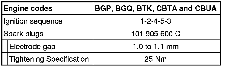 Spark Plug Technical Data