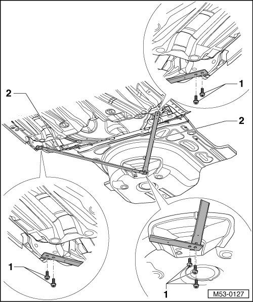 • To tighten bolts - 1 -, vehicle must be placed on even surface.