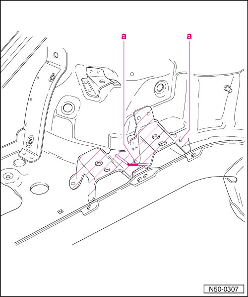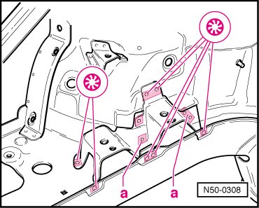 - Drill out welds - a -, 7 mm dia. (0.275 in.).