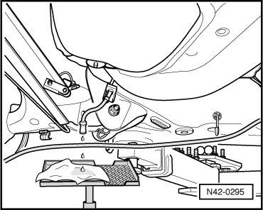 - Place engine/transmission jack (V.A.G 1383 A ) with a cloth under brake line.