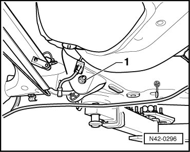- Remove bolts - 1 - while vehicle stands on wheels. If necessary, lift vehicle until bolts are accessible.