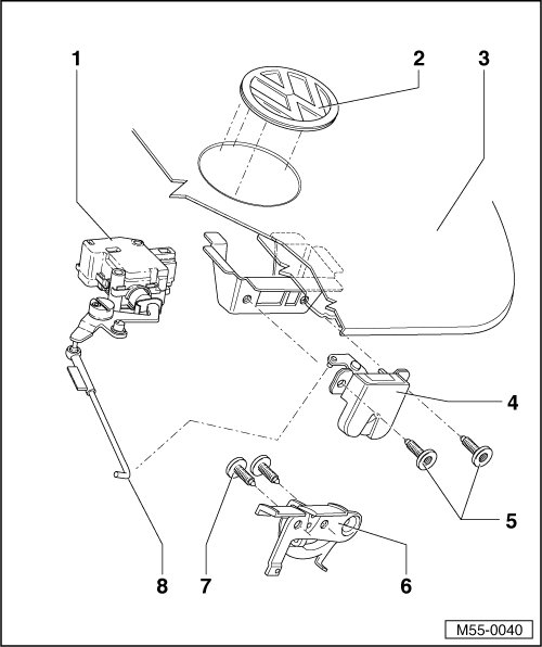 - Unhook operating rod - 8 -, remove bolts - 5 - and remove rear lid lock.