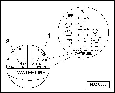 The scale - 1 - of the refractometer is designed for coolant additives -G 12- and -G 11-.