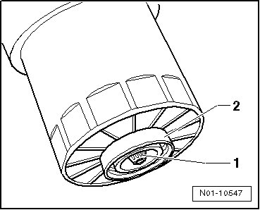 - Tighten the oil filter housing - 2 - to 25 Nm.
