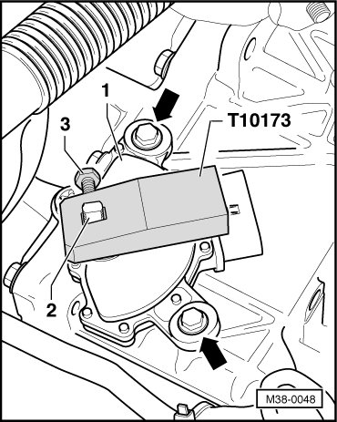 - Tighten bolts - arrows - to 6 Nm.