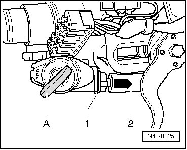 - Slide locking cable - 2 - in steering lock housing until clip - 1 - engages.