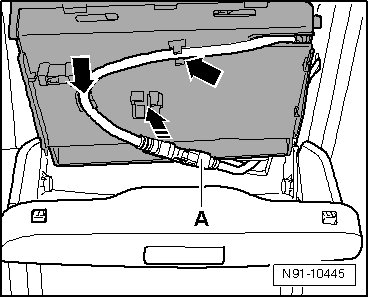 - Carefully pull monitor in - direction of arrow A - with hook (VAS 3370) until plastic pins disengage.