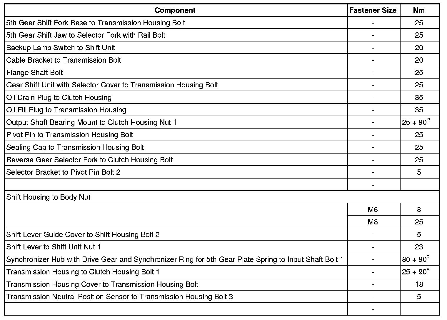 Transmission Support to Transmission Bracket and Transmission Bolt Tightening Specification