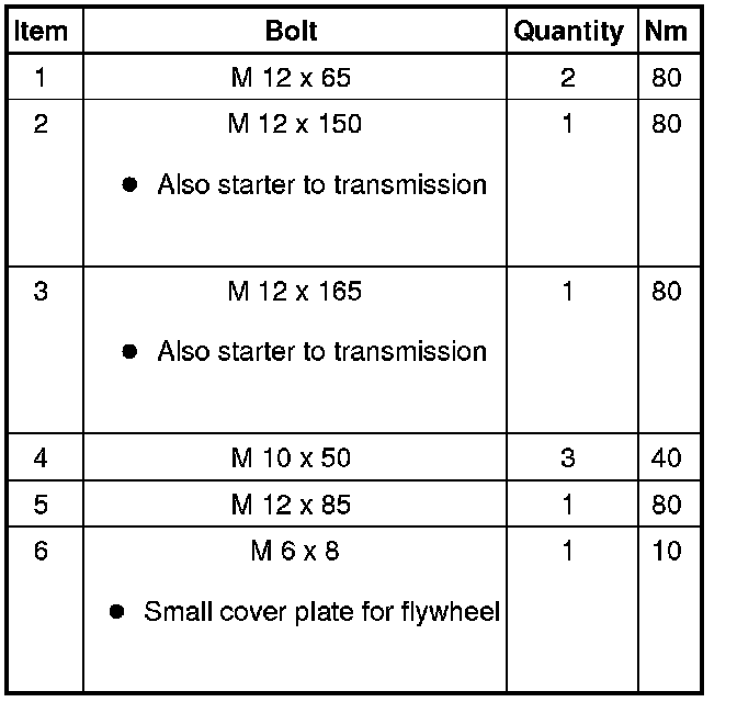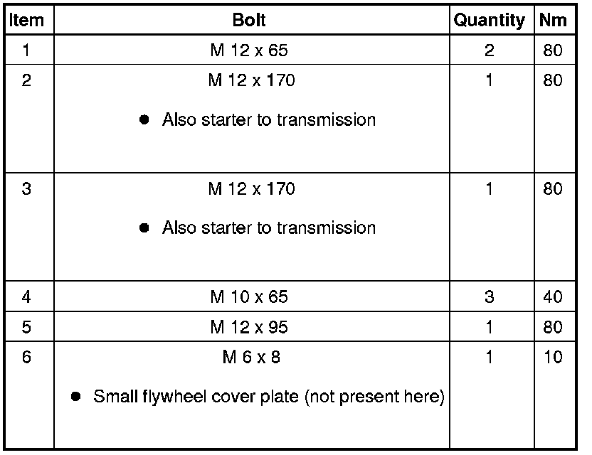 Golf, from MY 2010 - Transmission to Engine Bolt Tightening Specifications