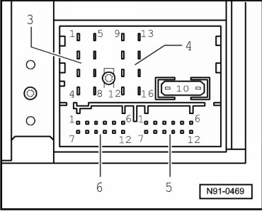 • Multi-pin connector assignments, refer to => [ 12-Pin Connector 6, CD Changer Control and Audio Input Signals ].