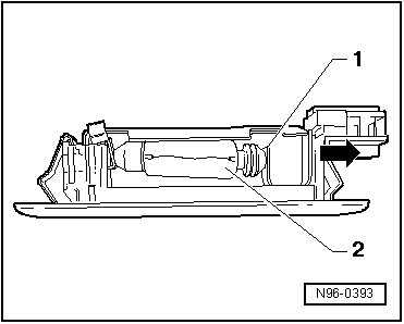 - Push contact plate - 1 - of light outward and remove soffit - 2 - from socket.