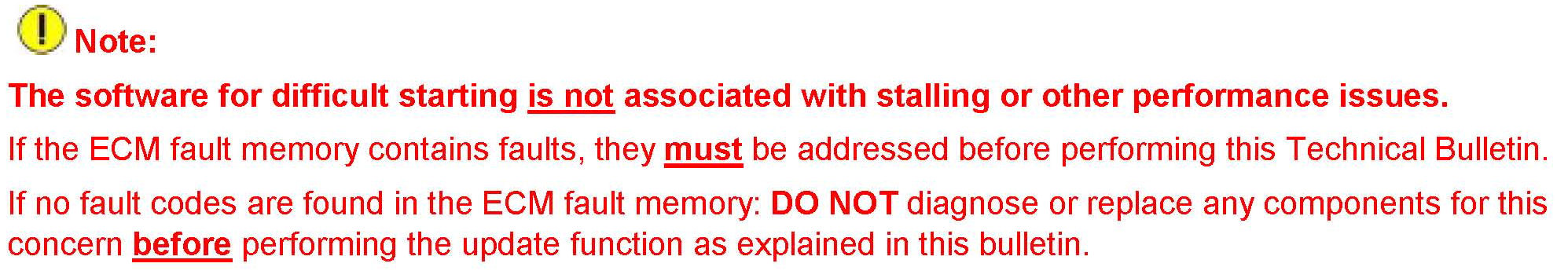 Update Programming, Engine Difficult to Start in Temperatures Below 32°F (0°C)